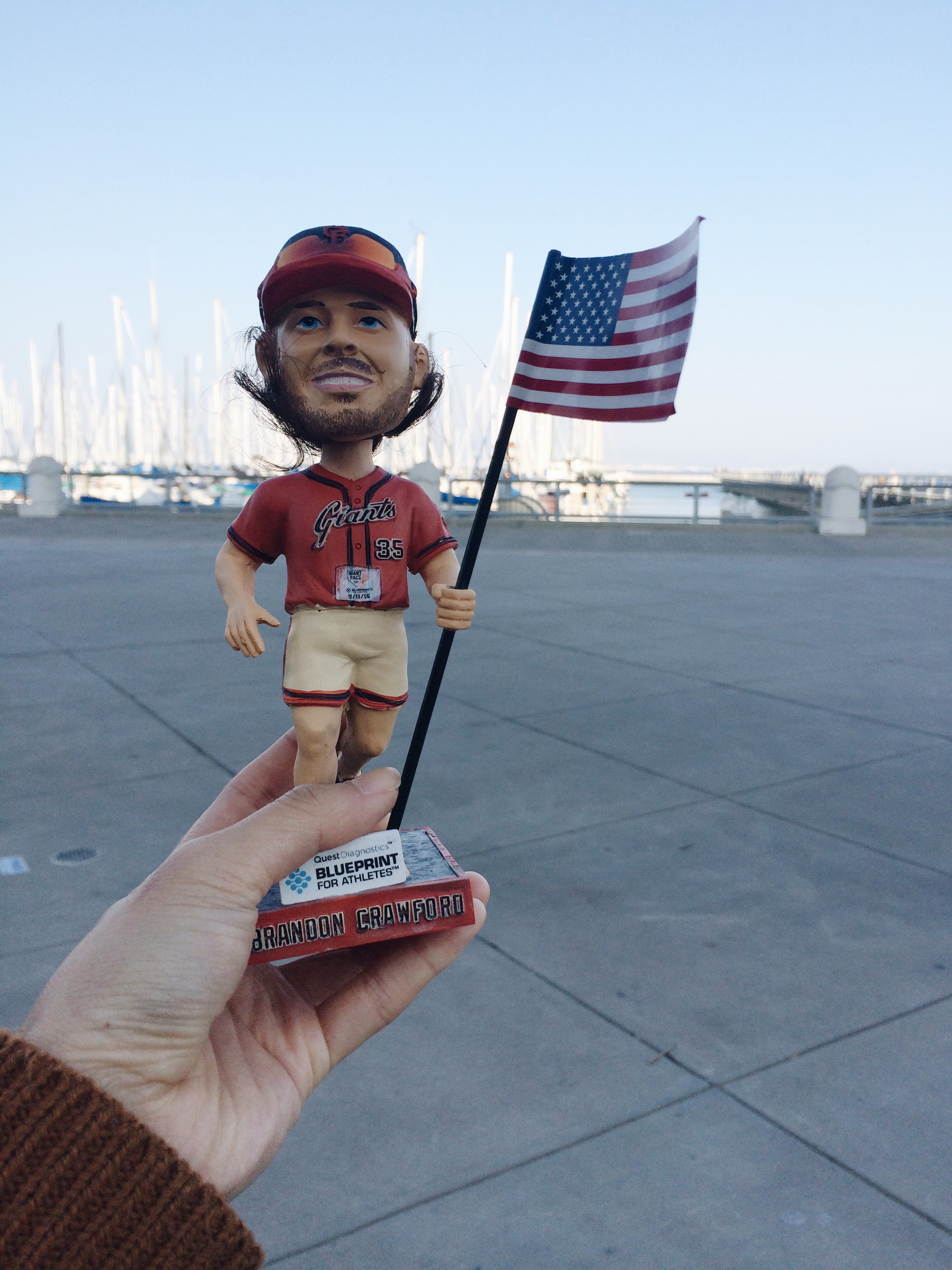 I ran a 10k this past Sunday morning, and surprisingly managed to pull out a PR! 10k in 49:37, average of 8:00 minute miles – 6th in my age group. The race was along the Embarcadero, a familiar route, and I got to finish inside AT&T park on the actual baseball field, which was a lot cooler than I thought it would be. I also got a very ugly bobble head as a prize.
