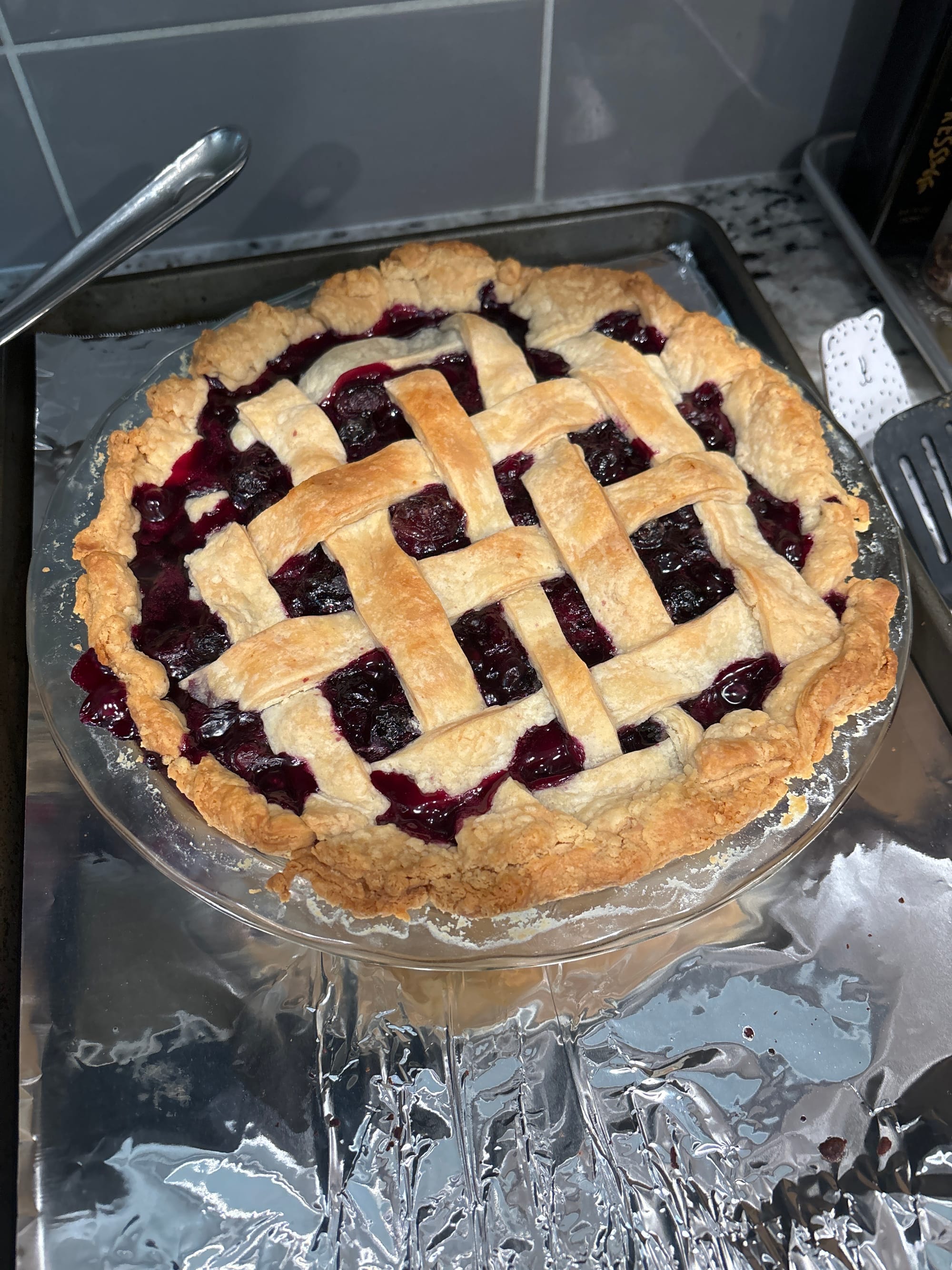 I also made a pie this last week! I attempted to be fancy and do a lattice crust, but I found that it made it harder to slice and serve. Maybe I should have made my top layer thinner? Also I think my recipe for pie crust is for a 9-inch pie and this is a 9.5, so I always have to do weird patchy things around the edges, haha.